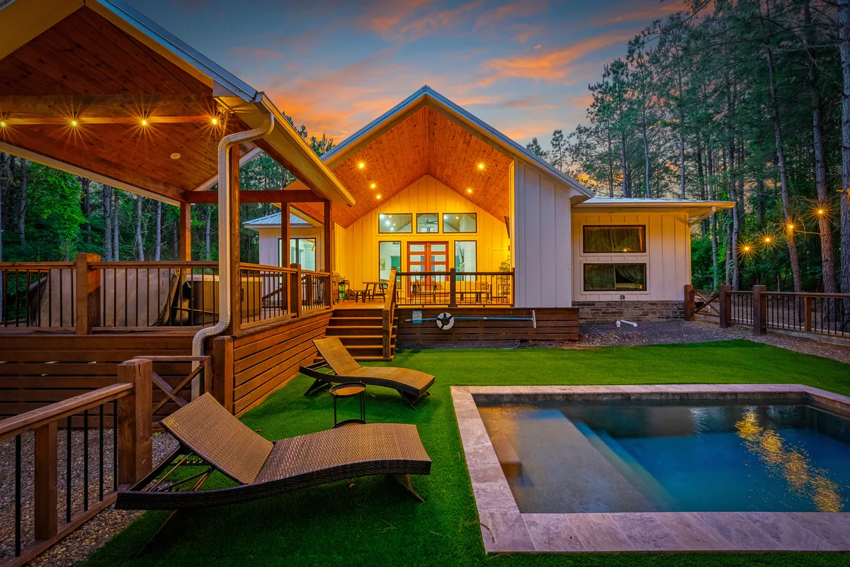 Escape to Wander Broken Bow Trail, a secluded retreat with stunning forest views. Enjoy a private outdoor pool and unwind in the hot tub. Gather around the fire pit under the stars or relax by the indoor and outdoor fireplaces. The fully equipped kitchen and outdoor BBQ grill make dining a breeze. Designed for comfort and adventure, this cabin blends luxury with nature, creating the perfect escape for relaxation and fun.