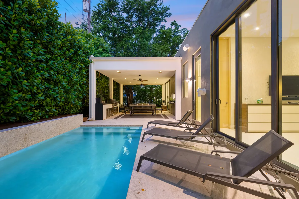 Wander District Palms is a luxury designer home that offers a stylish retreat with an outdoor pool and a spacious BBQ area, perfect for relaxation and entertaining.