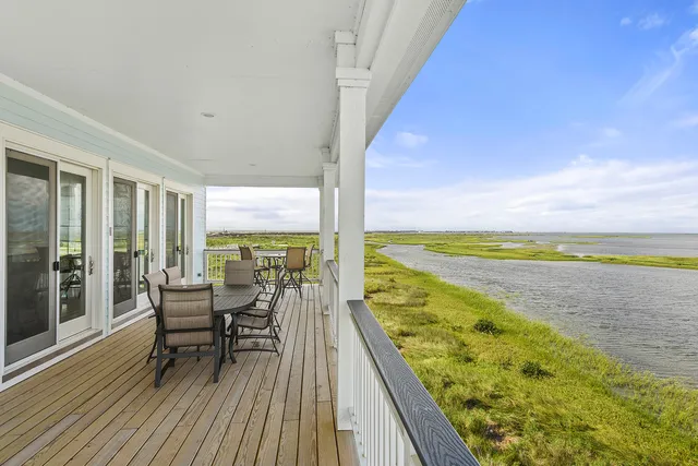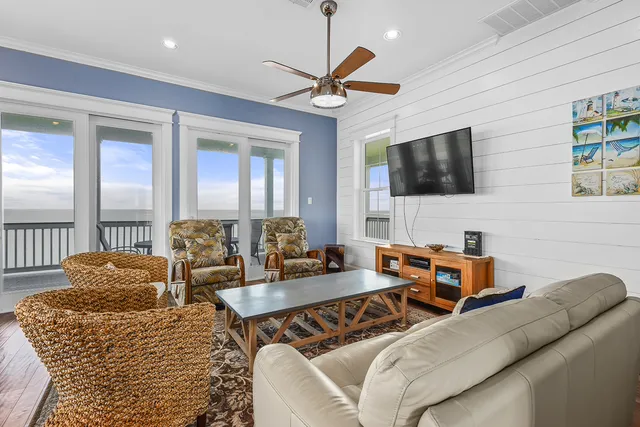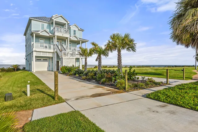 Wander Galveston Primrose is a luxurious waterfront retreat located just 30 feet from the bay, offering stunning sunset views and exceptional fishing and crabbing opportunities.